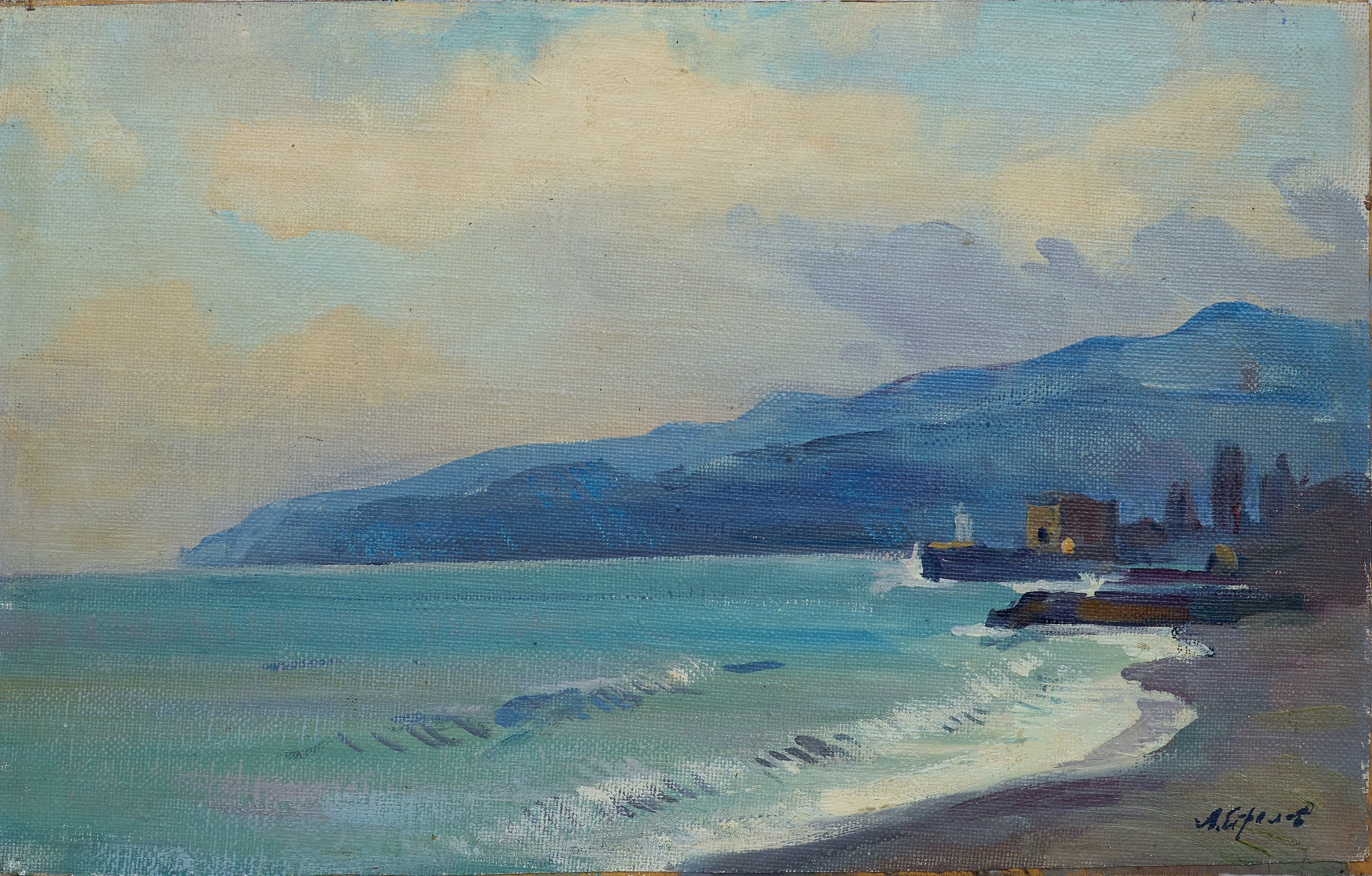 Картина Стрелова А.Е. "Массандровский пляж" картон/масло 33х52