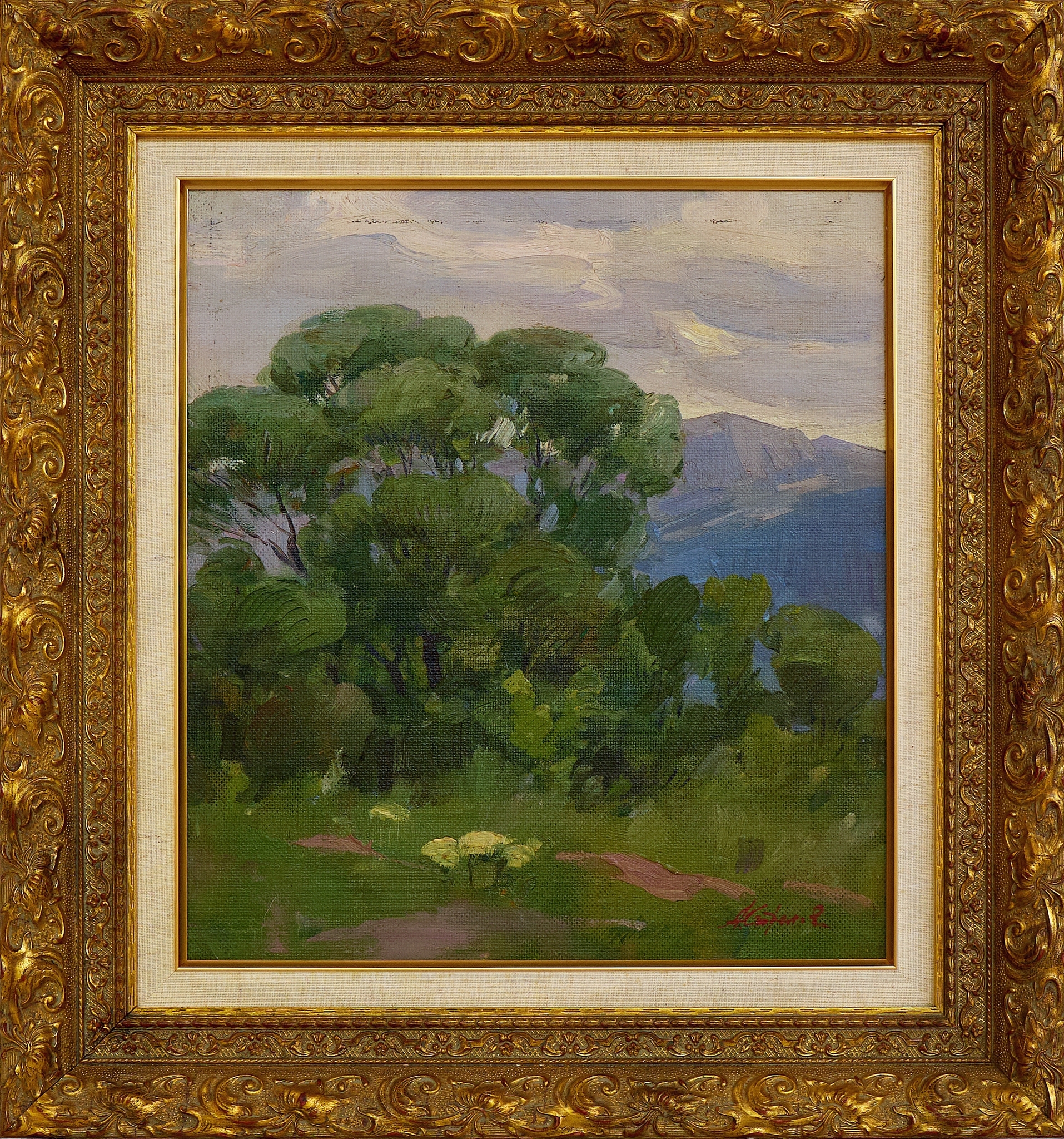 Картина Стрелова А.Е. "Майская зелень" картон/масло 41,5х39,5