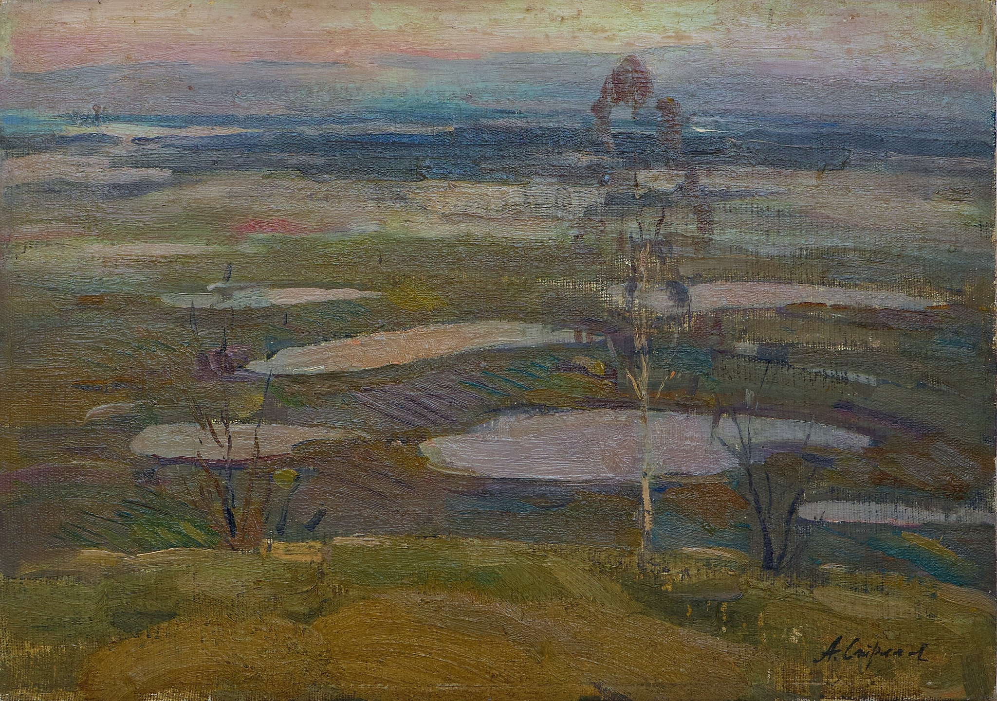 Картина Стрелова А.Е. "Озера" холст/картон/масло 35х50